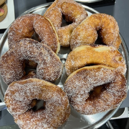 Kullanruskeaksi paistettu, pehmeä ja ilmava vappumunkki, joka on valmistettu itse käsin. Munkit viimeistellään kevyellä sokerikuorrutuksella, joka antaa täydellisen makean pinnan.
